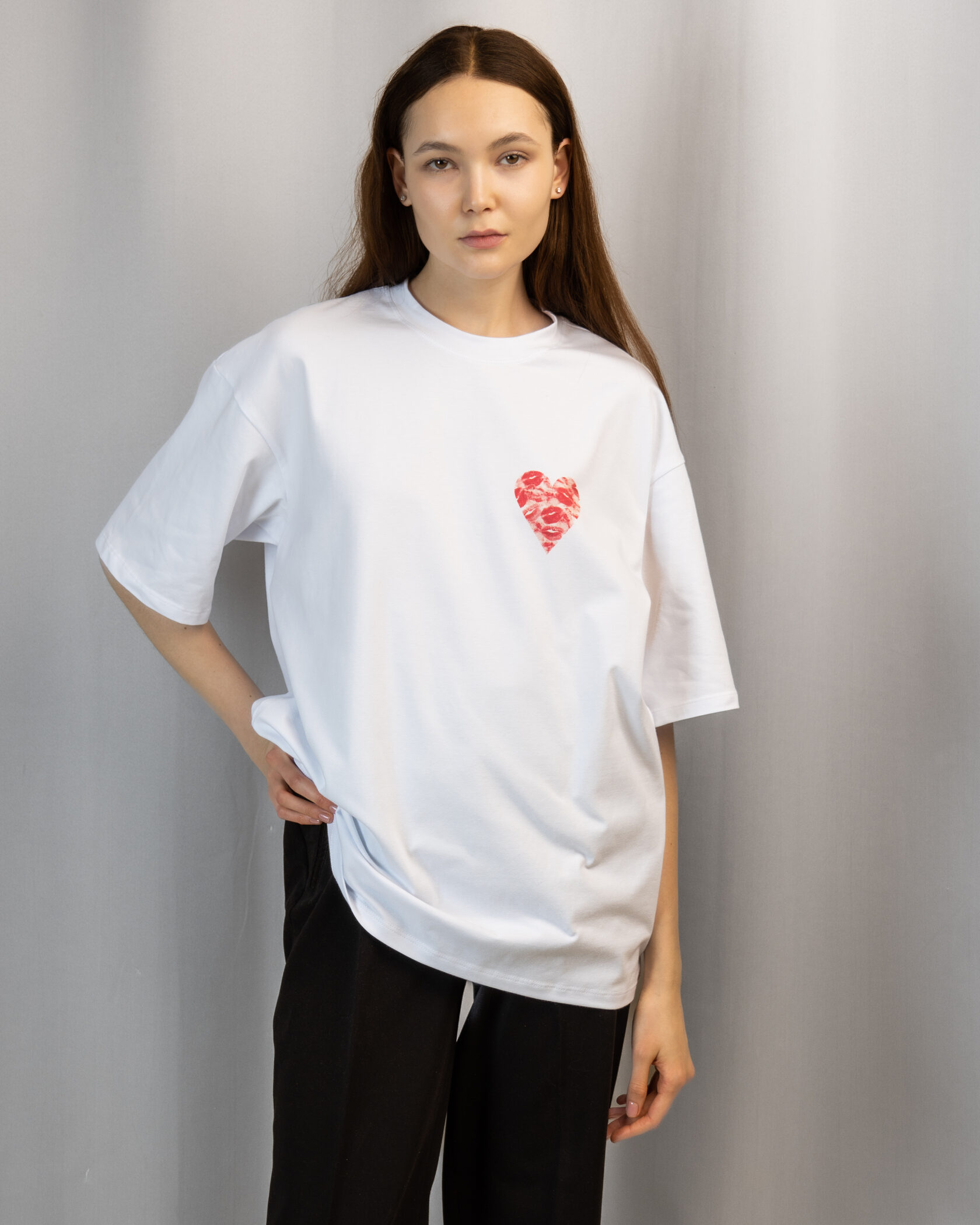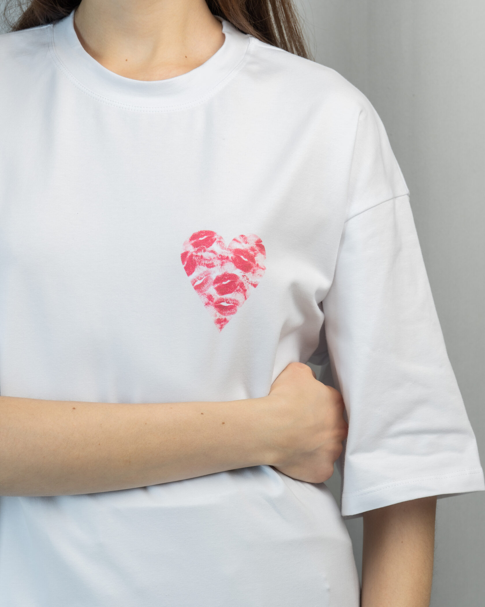 Сердце из поцелуев на этой футболке скажет больше, чем любые слова